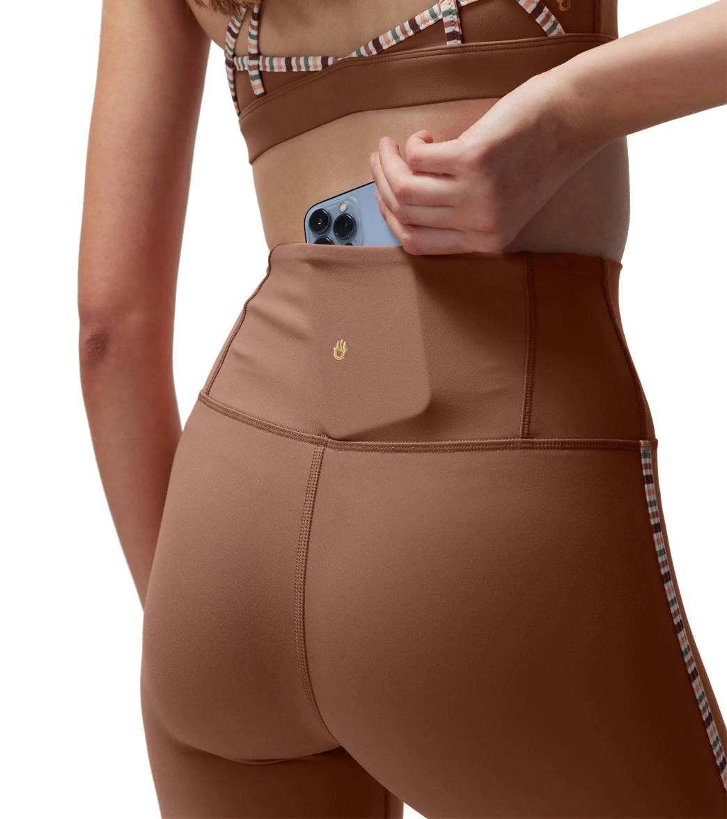 New to the Dream Tech Eco Jersey collection, the Spiritual Gangster Ada Dream Tech Eco Jersey High Waisted 7/8 Legging is destined to be your new favorite. This eco-conscious performance fabric is a blend of recycled fibers and Oeko-Tex® certified, chemical-free Coolcore® yarns to help regulate body temperature.