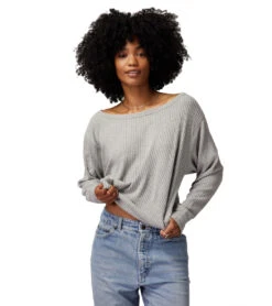 Get ready to claim the Spiritual Gangster Ballet Rib Banded Hem Vida as the softest top you own. Easy off-shoulder neckline pullover with the iconic SG Ballet Rib fabrication, it’s the perfect throw-on style to layer over a sports bar or tank. With a dance-inspired fit, this top is perfect for an off-duty look that’s laid-back and on-trend, while being extra cozy.