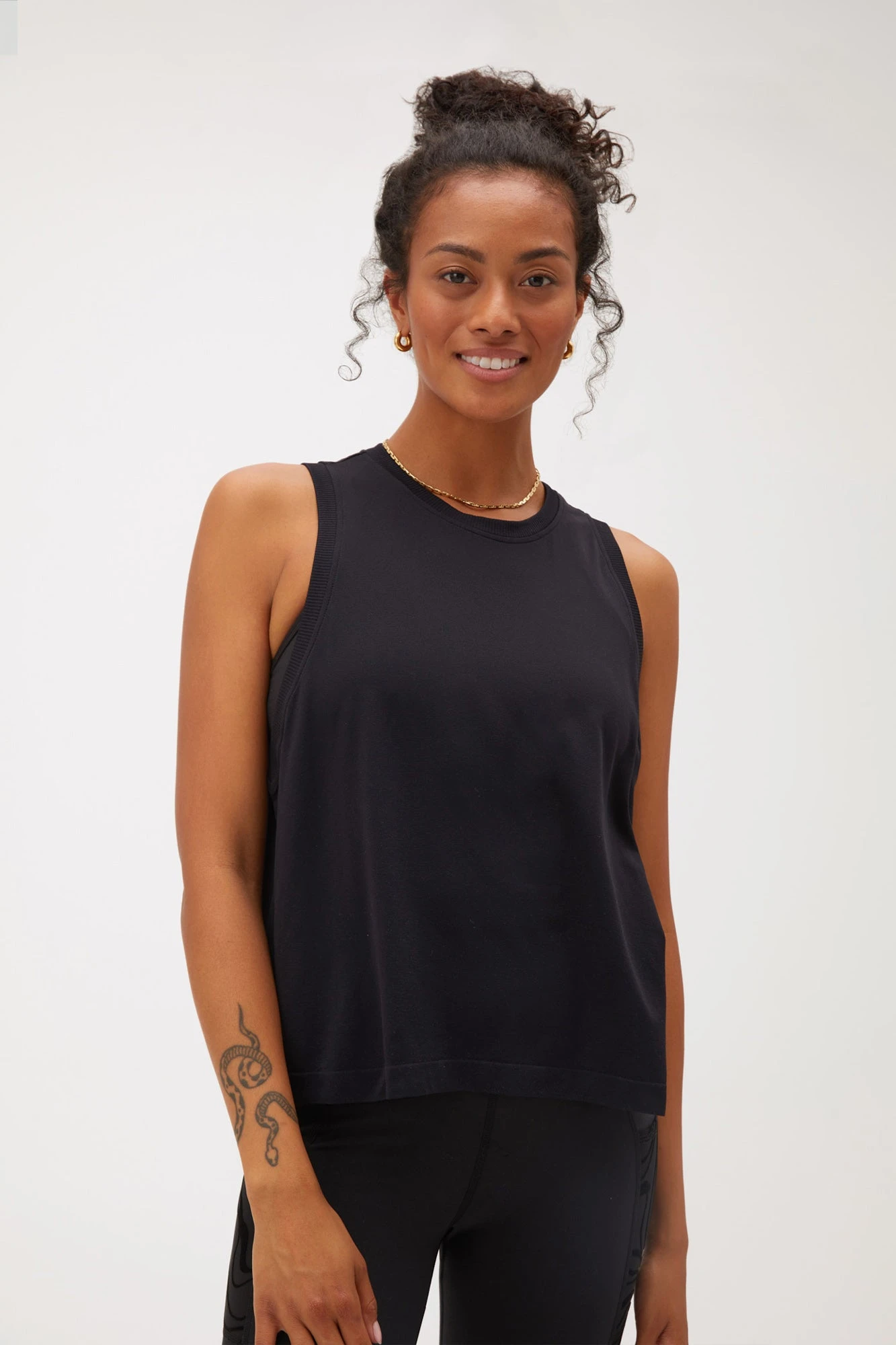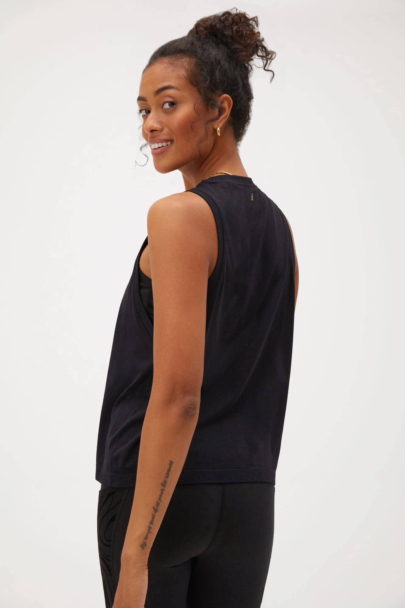 Even the sweatiest workouts are no match for the Elite Seamless Tank. Crafted in our ultra-stretchy, moisture-wicking Flow Seamless Jersey fabric, it was made for movement, lounge, and beyond. Cut for an easy, full-length fit — it’s designed with a notched armhole detail for a cool peek-a-boo sports bra moment.