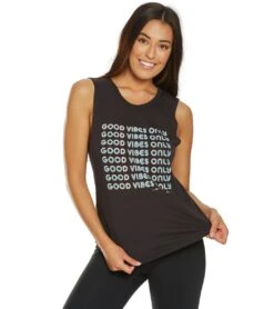 Plain and simple with the Spiritual Gangster Good Vibes Muscle Tank.