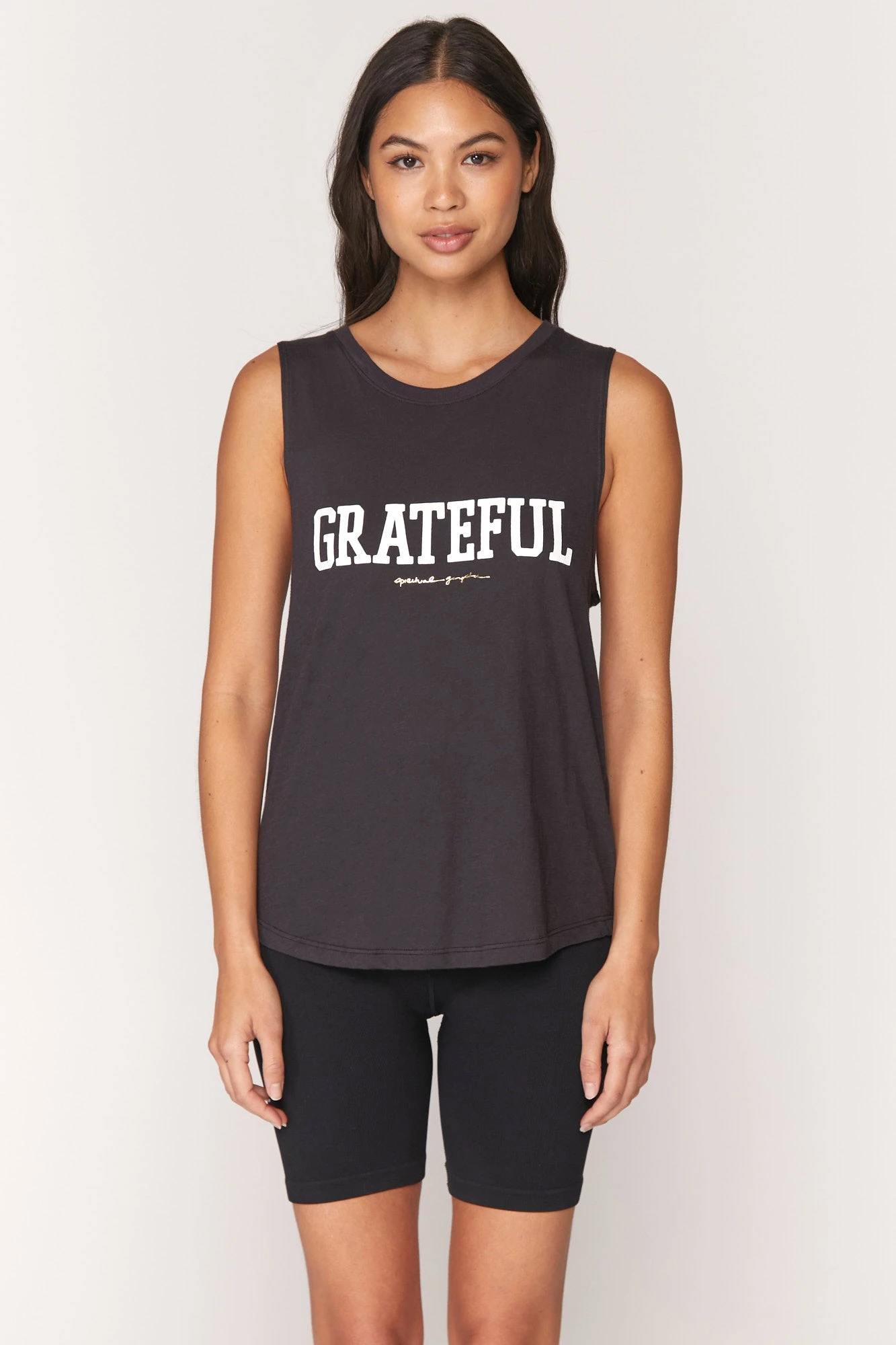 Gratitude is so gangster. A classic crewneck, straight, easy fit tank. Made in a soft, breathable cotton modal fabric.