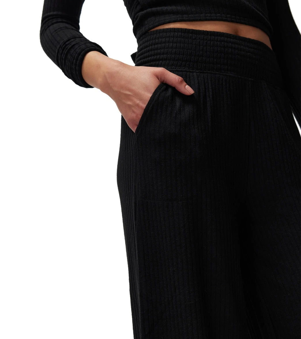 What loungewear dreams are made of. Live in Harmony in the Spiritual Gangster Harmony Rib Wide Leg Pant with waist-cinching smocking details, and pockets to hold all your essentials. These comfy bottoms will be your new favorite for the studio to the street to lounging.