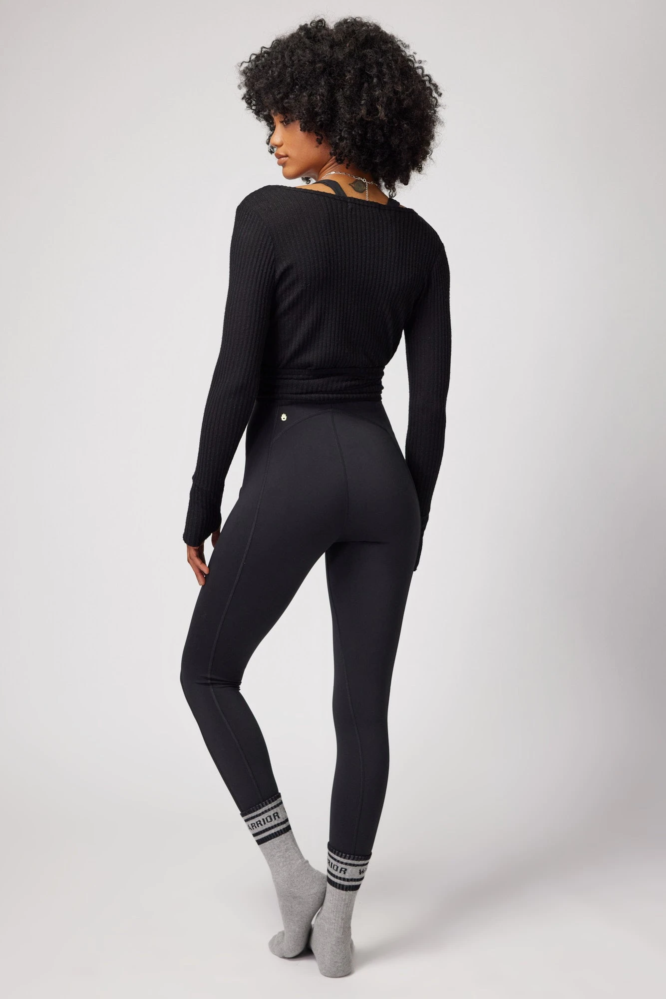 Wrapped in love. A sweater with a wrap front detail, thumbholes at sleeves, and a cropped fit. Made with our soft ribbed fabric featuring a slight stretch for ultimate cozy.