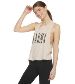 The Spiritual Gangster Karma Surplice Back Swing Tank features an open back, perfect for warm vinyasa classes.