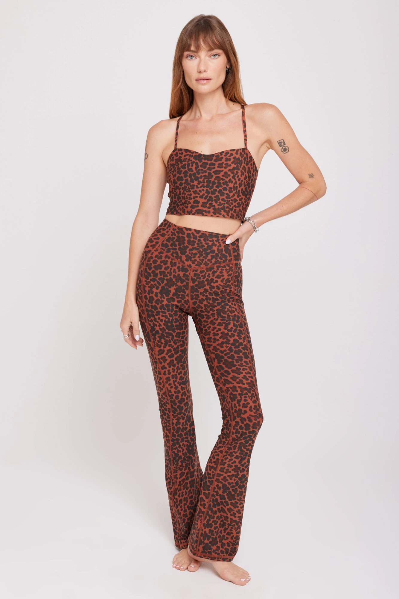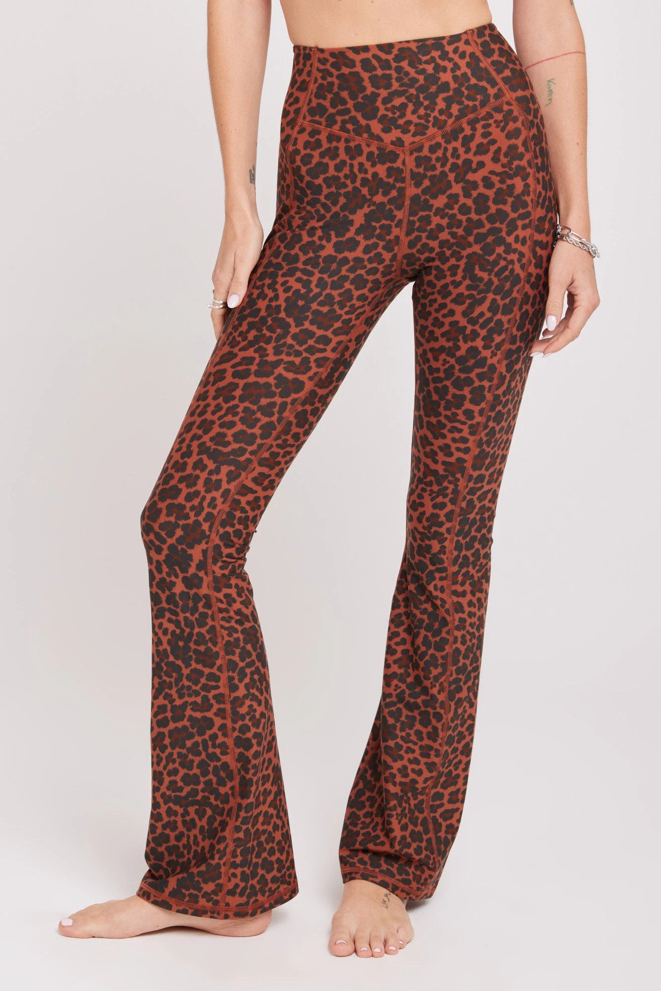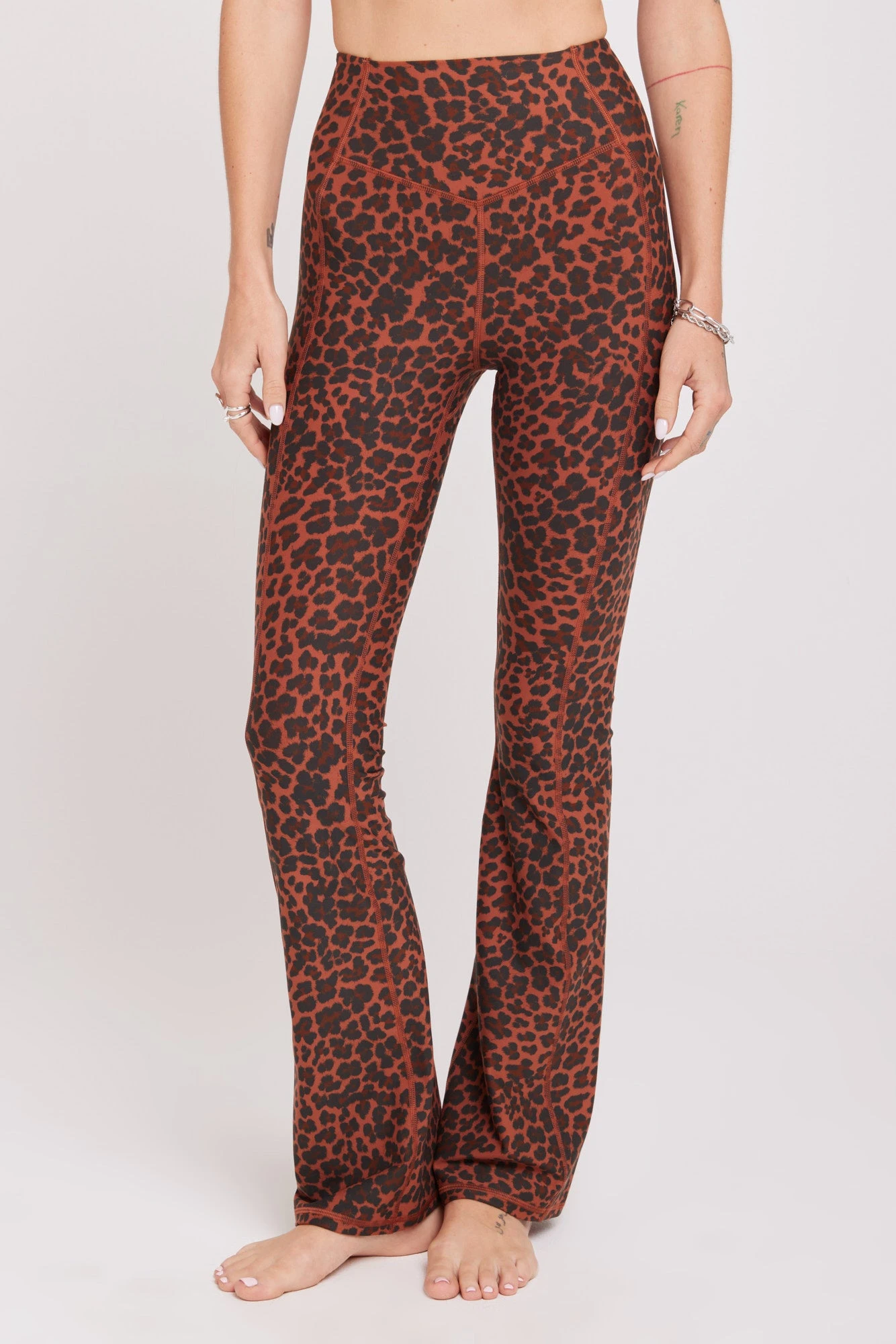 Kendall Toole x Spiritual Gangster. One of Kendall’s favorite leggings, our high-rise flair with compressive fit now comes in a KT signature leopard print. Kendall loves this statement piece for its versatility. You will stand out in the gym or on the street. See how Kendall styles this many ways. Made with SG Dream Tech Eco-Jersey fabric, it is moisture-wicking, quick-drying, and anti-odor.
