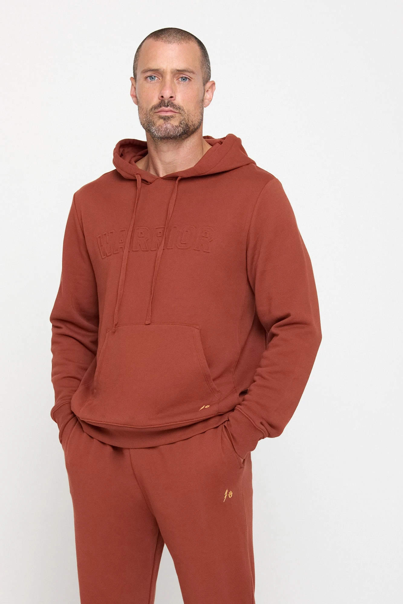 Kendall Toole x Spiritual Gangster. A classic pullover with a relaxed fit, jersey-lined hood, and a front kangaroo pocket. Warrior subtly embossed on front with signature lighting bolt embroidery in accent color. Designed in a soft, breathable cotton terry material. Made with 100% Cotton.
