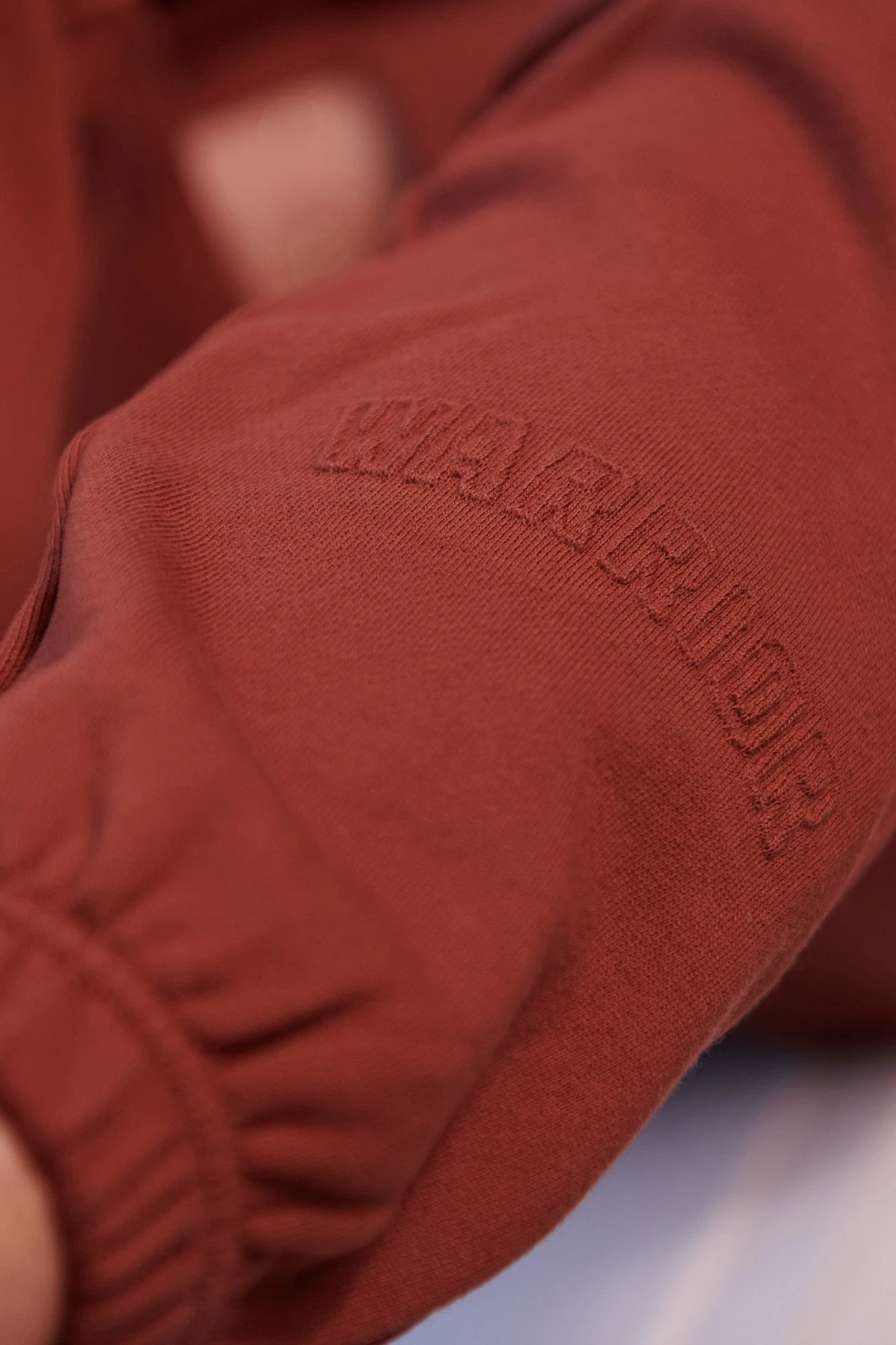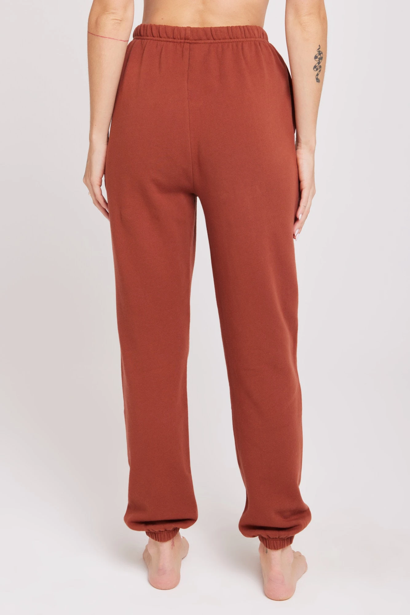 Kendall Toole x Spiritual Gangster. A loose fitting old school jogger pant with elastic waistband, bottom openings and side pockets. Warrior subtly embossed on bottom leg and signature logos embroidered in accent color at pocket. Made with 100% cotton.