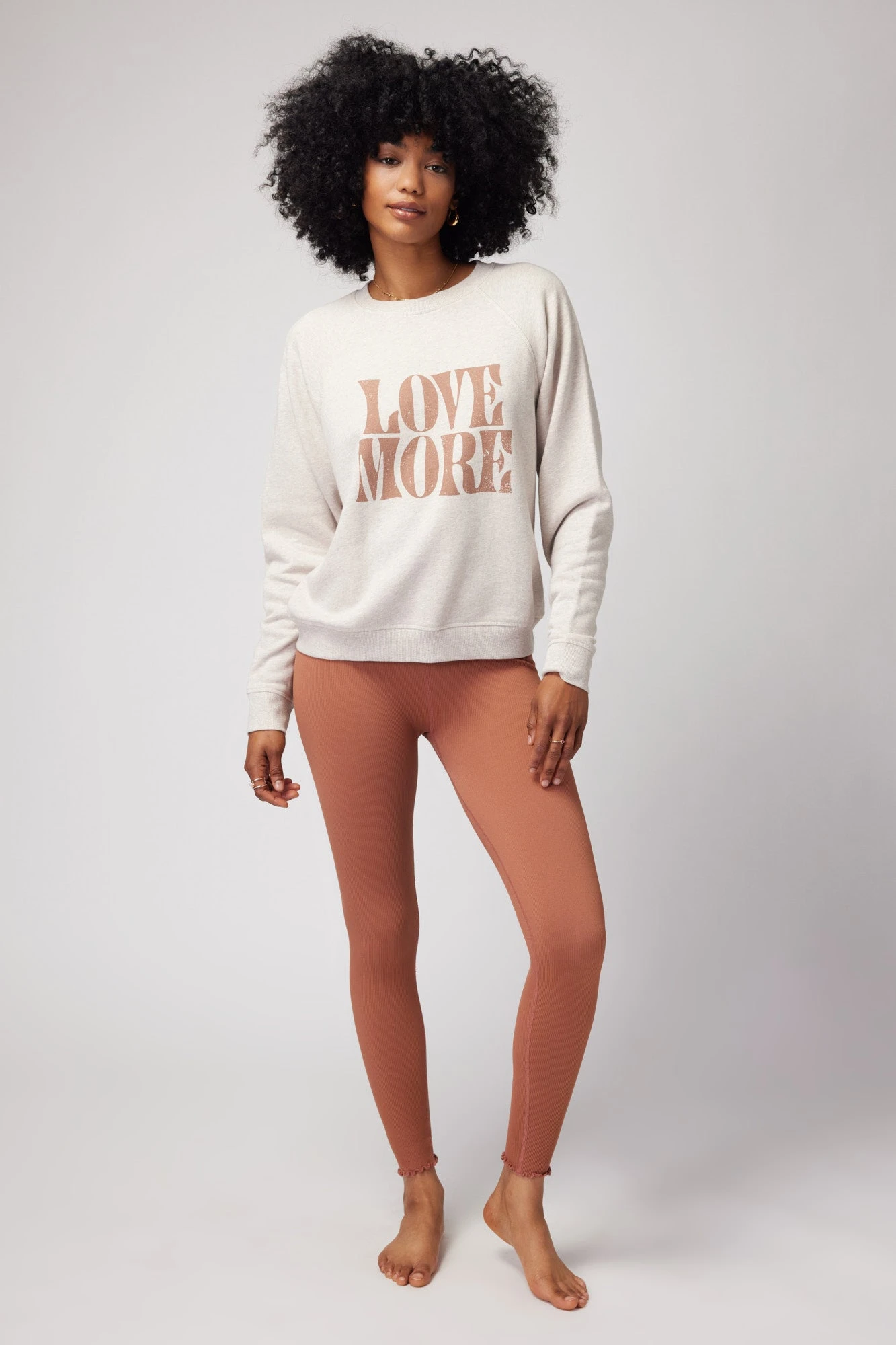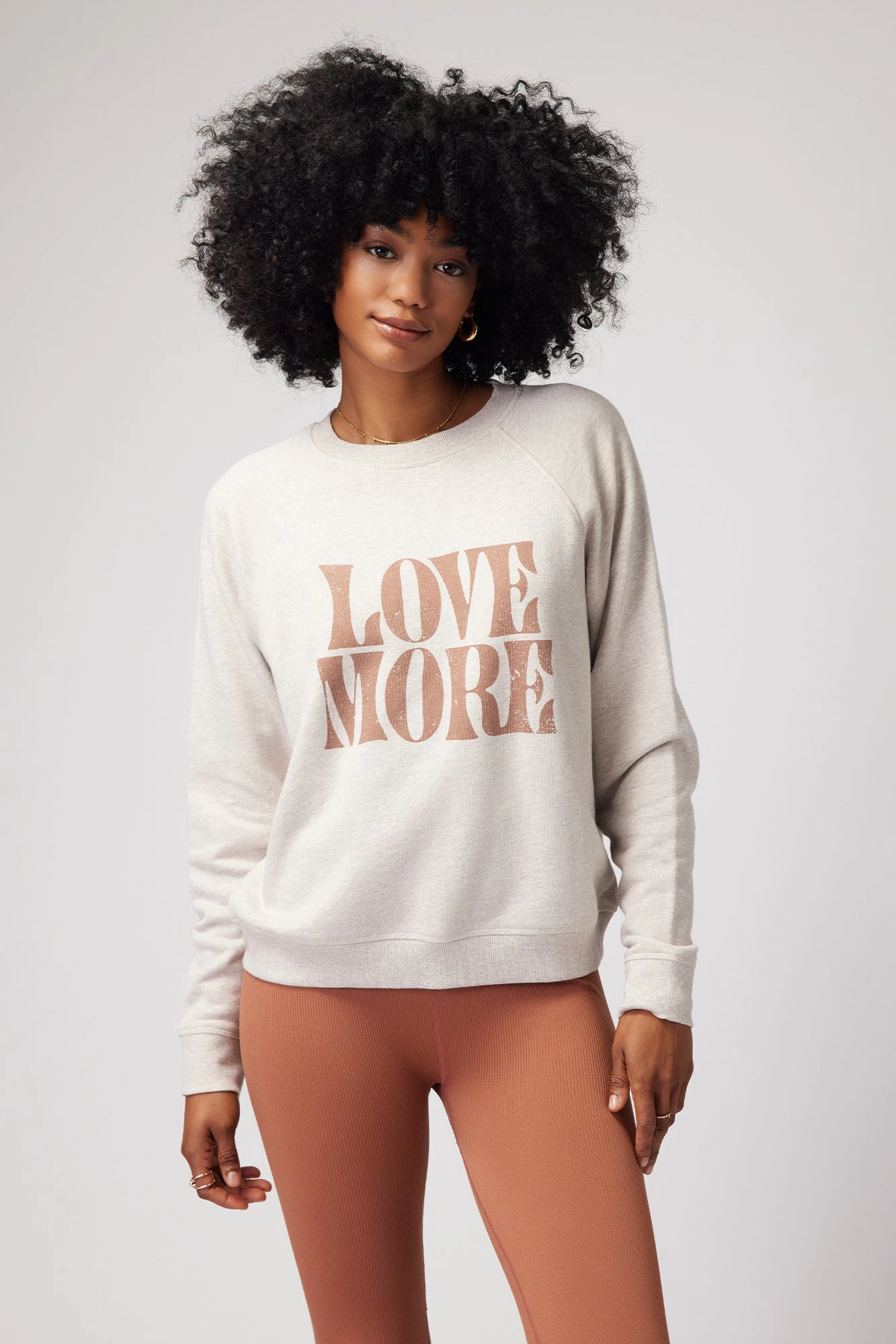 More is more. Best-selling Bridget Raglan Pullover, designed in a relaxed fit with dropped armholes, with a new ‘LOVE MORE’ graphic.