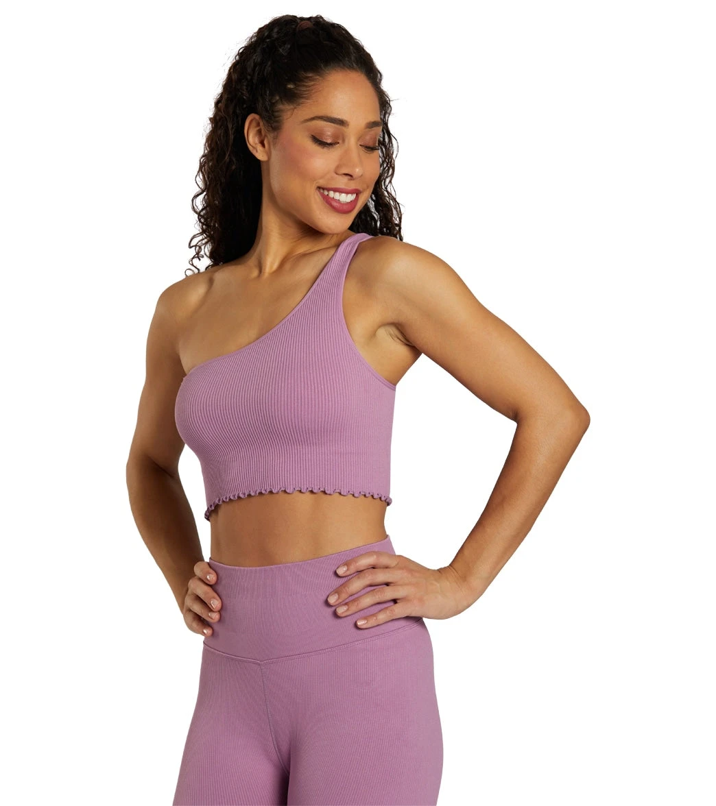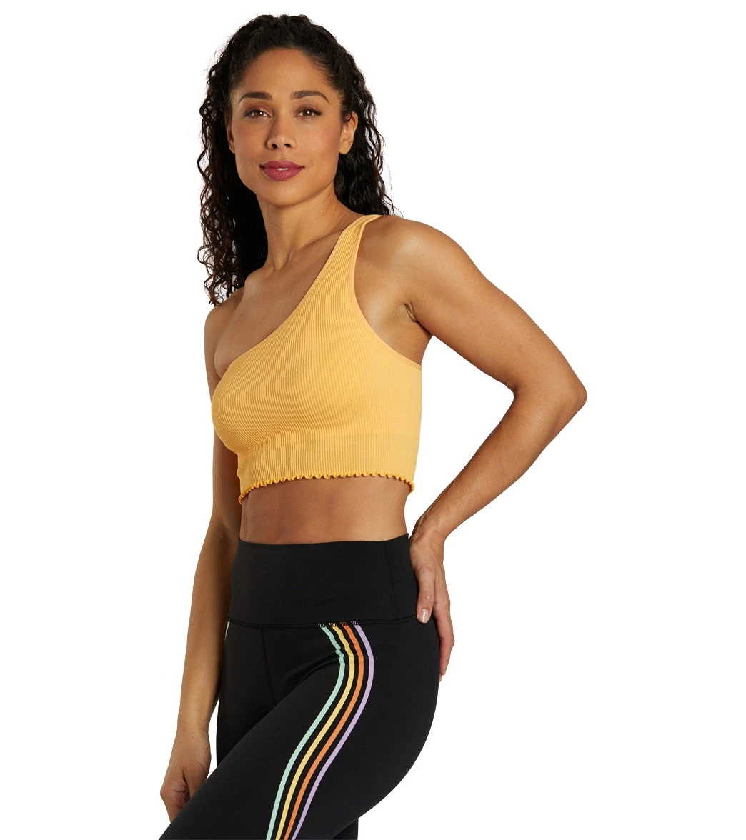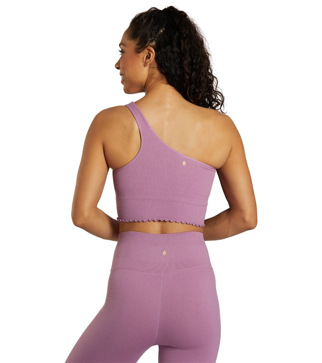 The Spiritual Gangster Luna One Shoulder Seamless Tank was designed with an edgy, asymmetrical silhouette. A built-in shelf bra offers support while you flow and its soft, sweat-wicking fabric means you’ll wear it long past savasana.