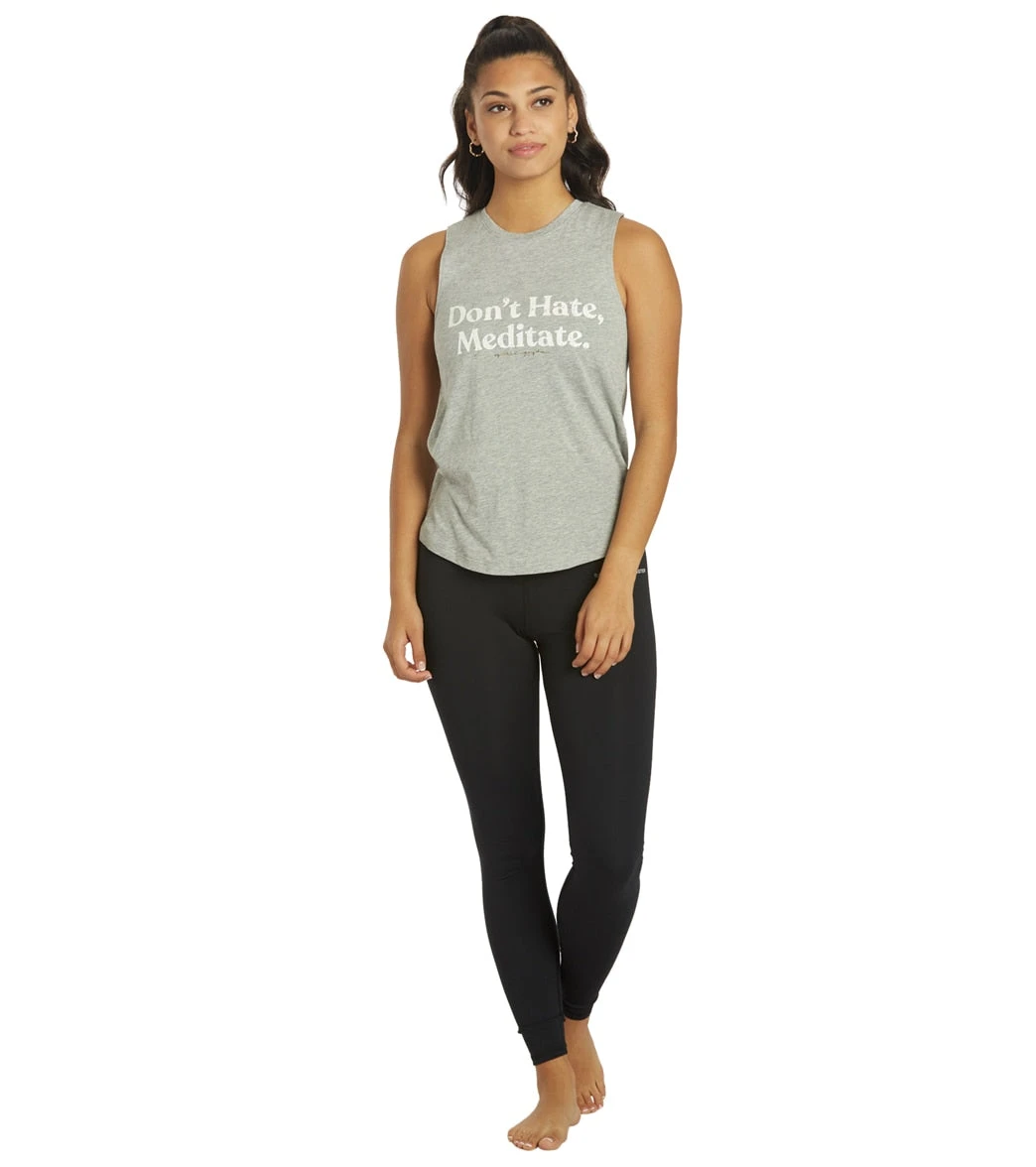 Don’t hate, meditate in the Spiritual Gangster Meditate Muscle Tank, a classic silhouette with an updated slogan.
