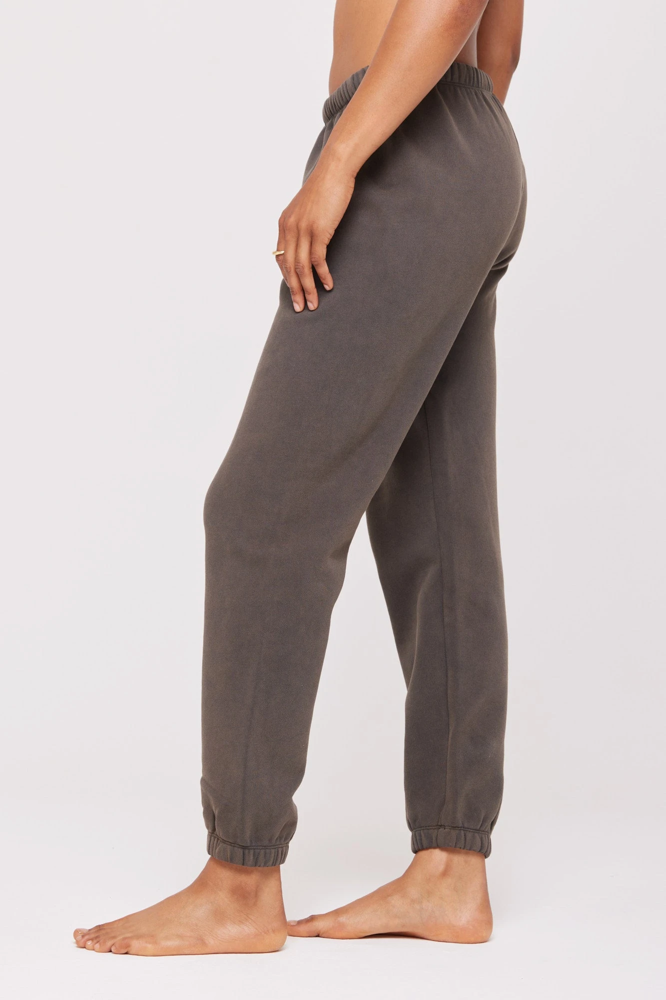 To the moon and back. An ankle-length, straight-fit, mid-rise jogger pant with an elastic waistband. Made with 100% cotton with a mineral wash for a worn in vintage feel.