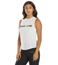 Exude peace and love in the Spiritual Gangster Peace Active Muscle Tank, a classic silhouette with quick-drying, 4-way stretch technology.