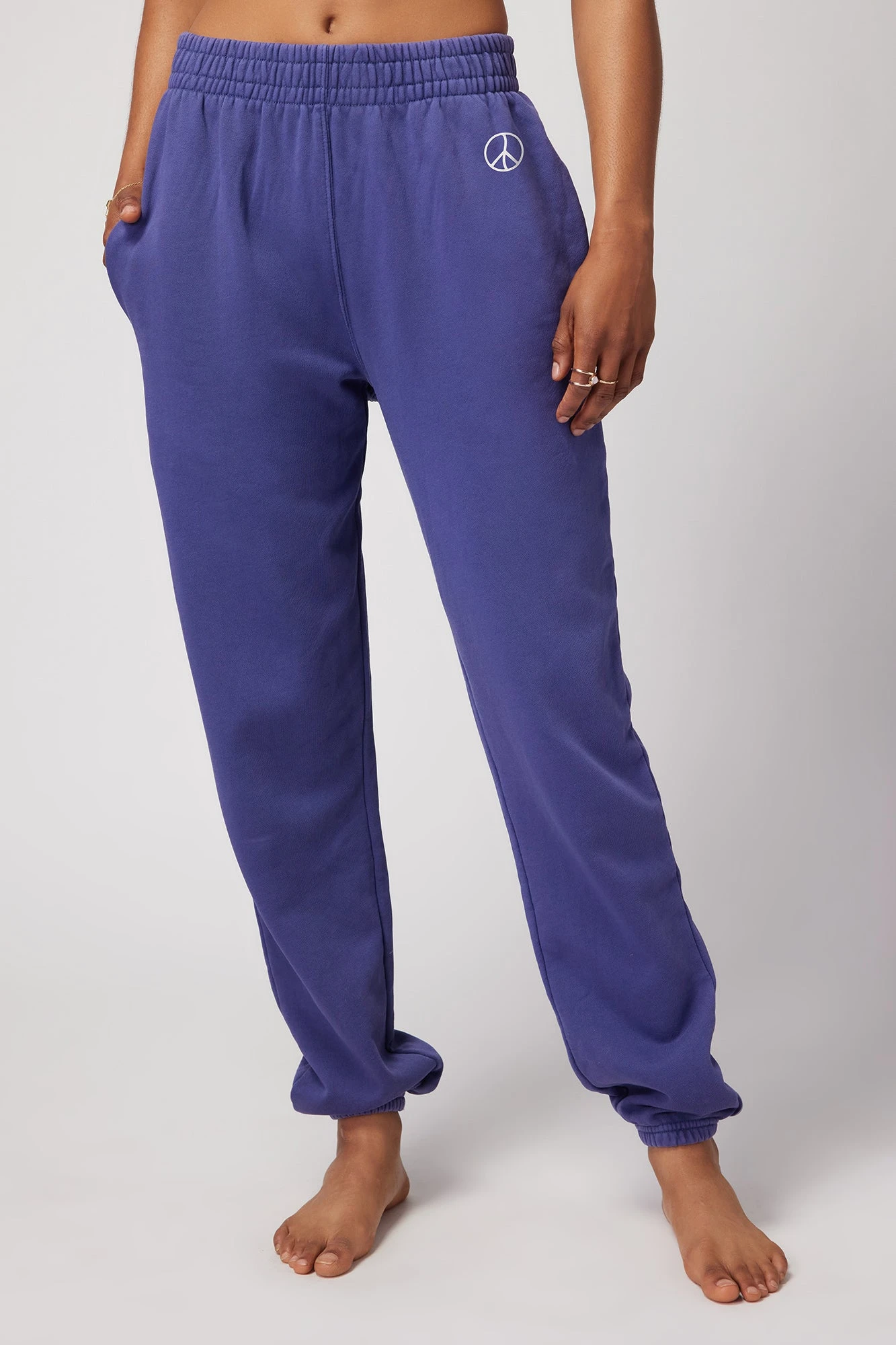 Prioritize your peace. A soft sweatpant with a high waisted, relaxed fit, elasticated waistband and bottom cuffs, and side seam pockets. Featuring a snow wash effect, these sweats are made with 100% cotton slub french terry.