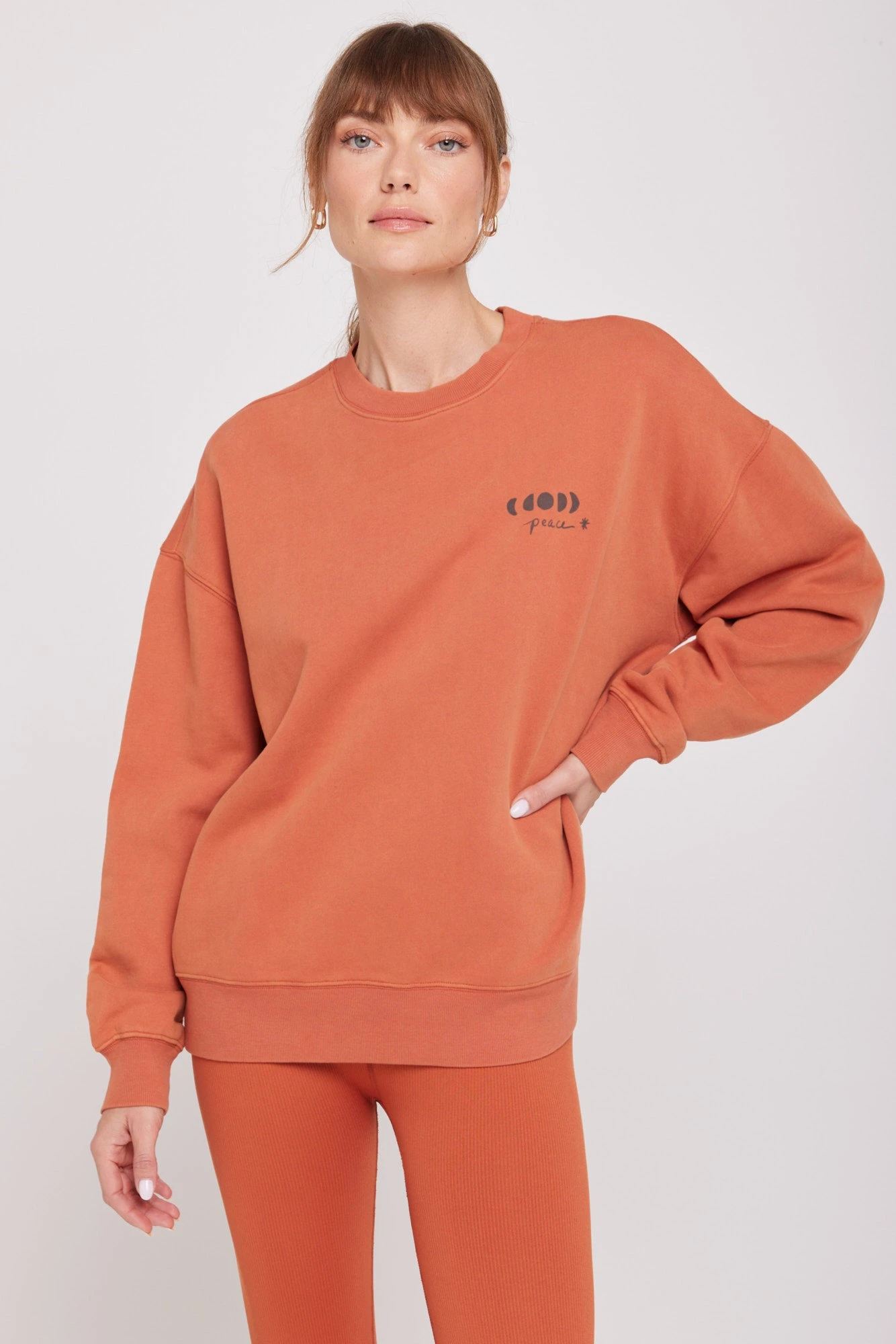 At peace. A relaxed fit, hip length crewneck sweatshirt. Designed with Made with a dropped shoulder and peace graphic. Made with 100% cotton.
