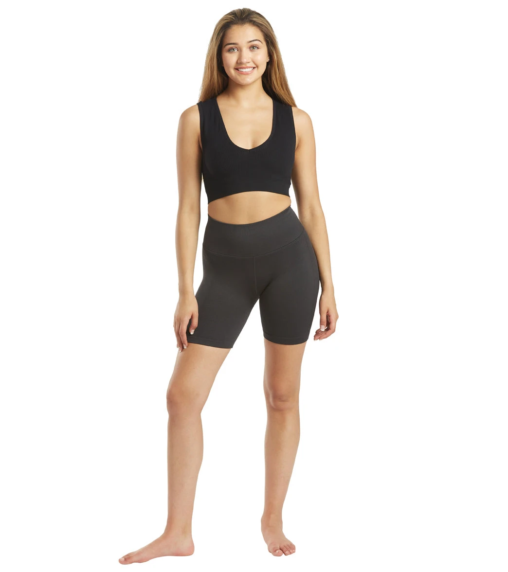 The Spiritual Gangster Ribbed Metta Plunge Yoga Brami offers the right amount of support during a low impact practice.
