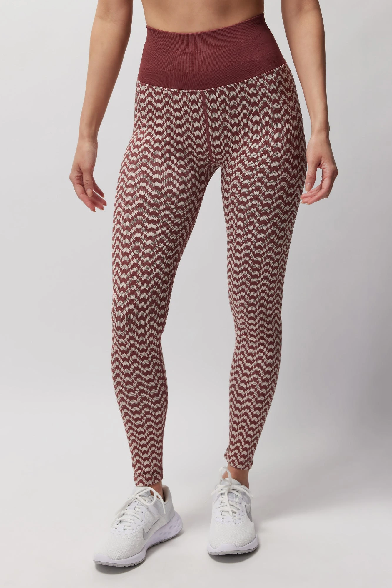 So seamless. A new high-rise, body-hugging fit legging, designed with a graduated compression waistband with interior silicone gripper, custom jacquard pattern, contrast waistband and 7/8 length. Pair with the Athena Seamless Jacquard Crop Tank for a matching look.