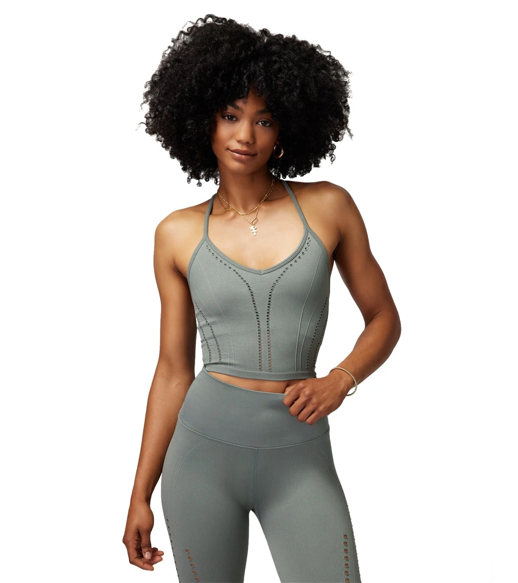 Take the plunge in the Spiritual Gangster Thea Seamless Crop Tank. Featuring a sleek V-neckline and drop needle detailing to highlight your natural curves, it’s subtly cropped to show just a hint of skin when paired with high-waisted leggings.
