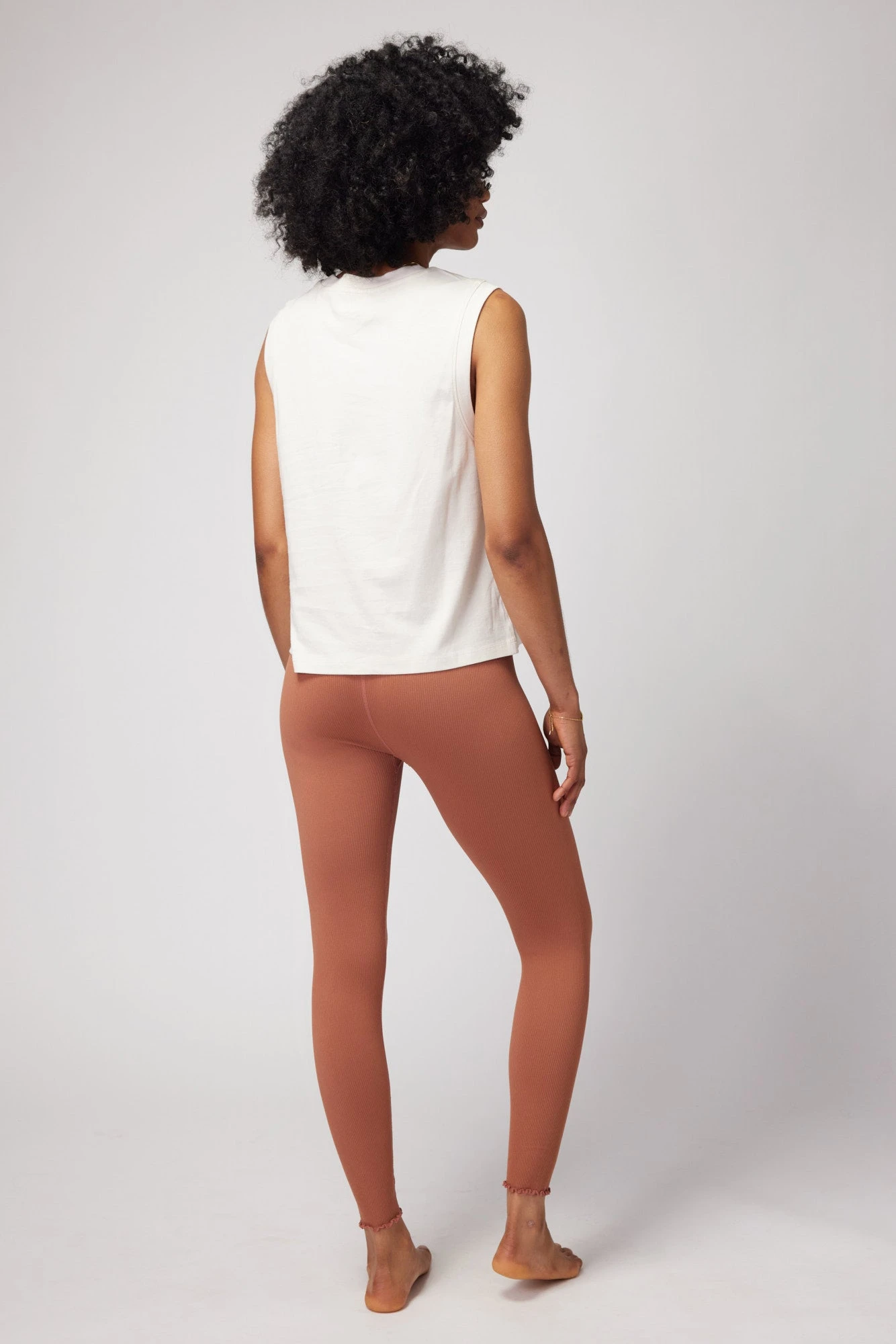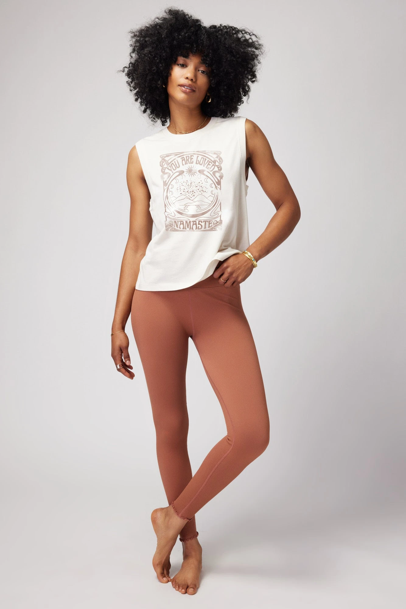 Love yourself. A time-tested muscle tank designed with a relaxed crew neck and shirt tail hem. Made with comfortable cotton and modal, this tank is features a new nature graphic you’ll love.