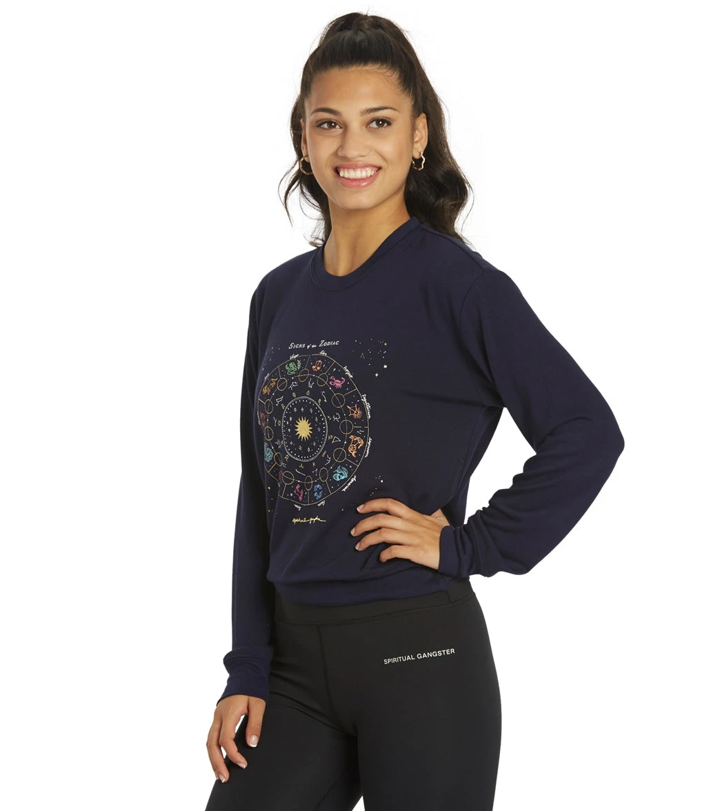 Chart your course in the Spiritual Gangster Zodiac Crew Neck Savasana Pullover, a classic silhouette with an updated zodiac-trend graphic.